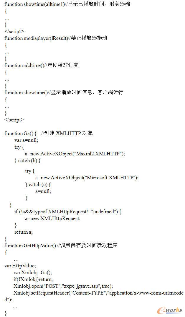 在企業(yè)在線培訓(xùn)系統(tǒng)中,用Ajax技術(shù)實(shí)現(xiàn)在線學(xué)習(xí)時(shí)間的讀取與保存,自動計(jì)算學(xué)時(shí)學(xué)分,以下為關(guān)鍵代碼: