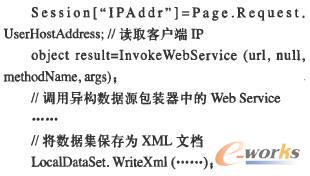 調用Find_Model函數之后,能得到局部數據源包裝器的WSDL文件的地址,通過該地址調用InvokeWebService函數動態生成本地客戶端代理,然后就可以象調用本地方法一樣調用遠程Web服務包裝器的方法。