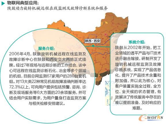 前文提及孫為平建設的系統正是物聯網在制造業的實際應用。“在陜鼓控制車間的電腦終端上,只要一點鼠標,就可以看見全球任何地方使用的陜鼓產品的運行情況,一旦出現問題,馬上可以進行在線的專家會診。”陜鼓動力總經理陳黨民這樣描述陜鼓的旋轉機械遠程在線監測及故障診斷系統(下稱“遠程監測系統”)。
